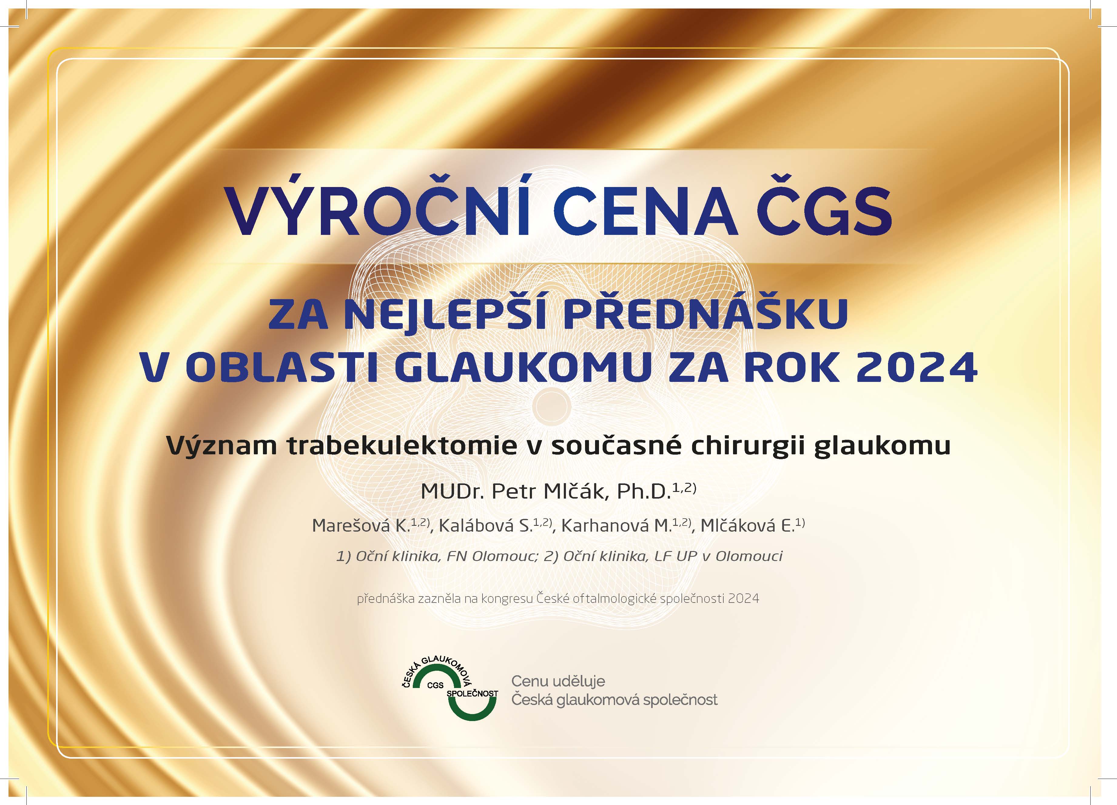 Kongres České glaukomové společnosti, Praha 2010. Sborník abstrakt: s. 38, ISBN 978-80-254-68944